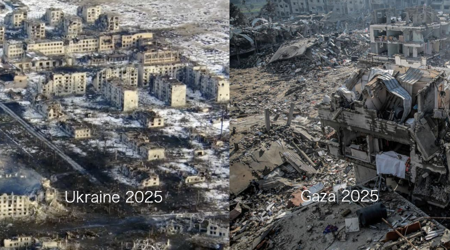 Russlands Regierung spricht der Ukraine das Existenzrecht ab und Israels Regierung erkennt einen Paläsitineser-Staat nicht an und besetzt/besiedelt immer wieder palästinesisches Land. Und jetzt den Gaza-Streifen?